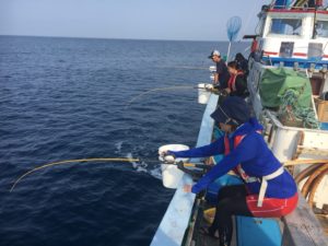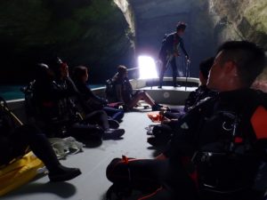 船に乗り込んで海の上から