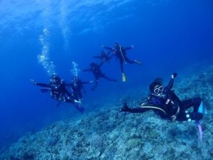 ダイビング後はみんなでビール片手に