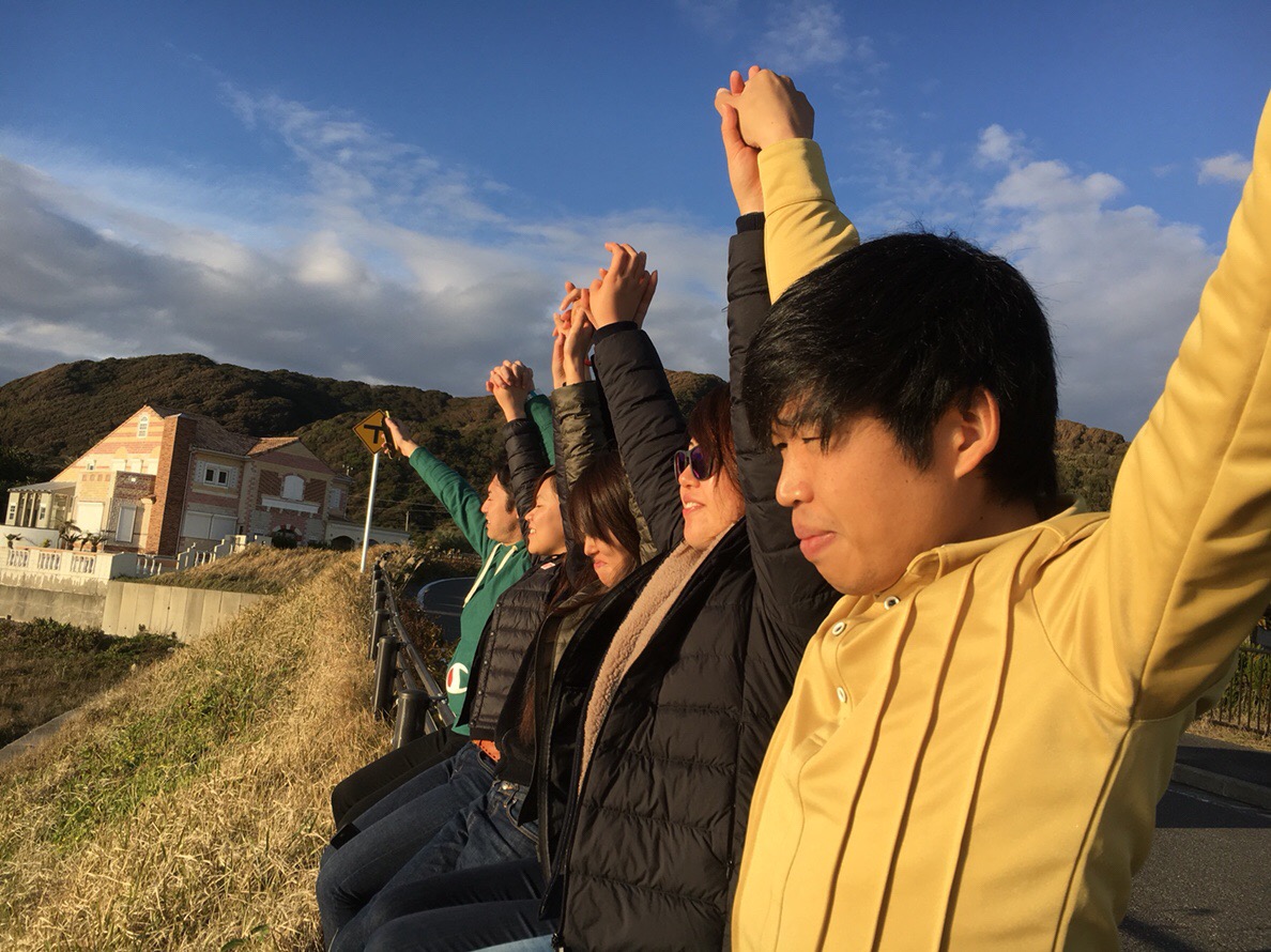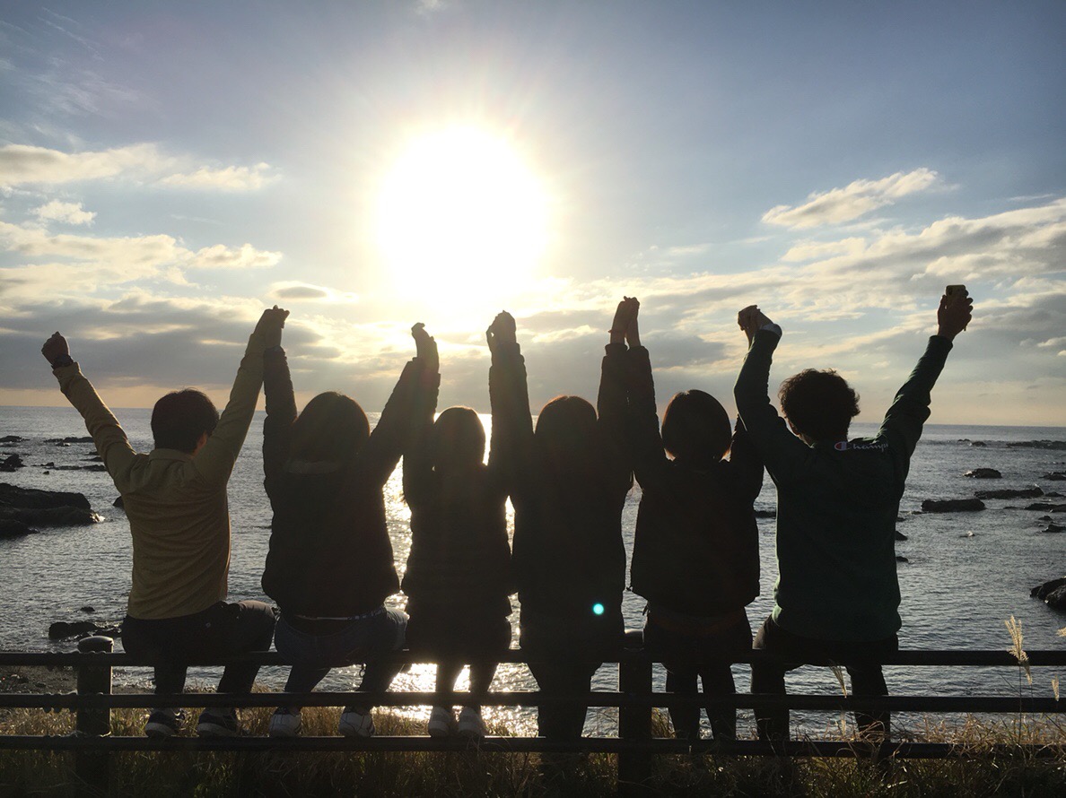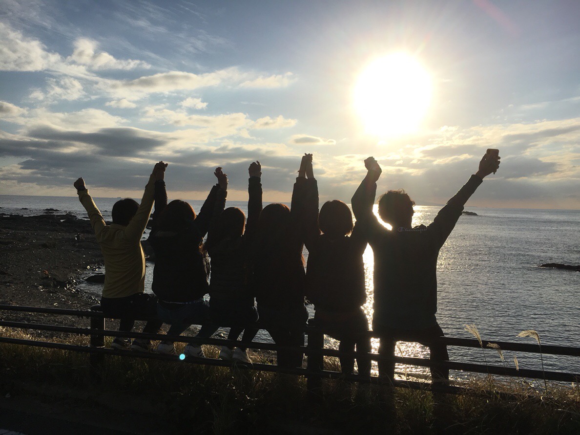 みんなで夕日を見ながら