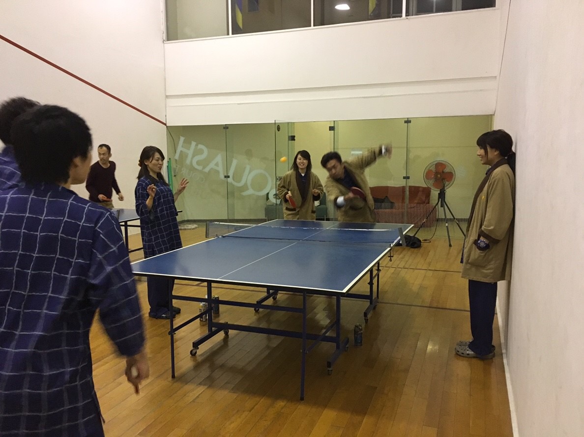 宿泊先に卓球台!
