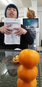 ブリーフィングしながらミカン!