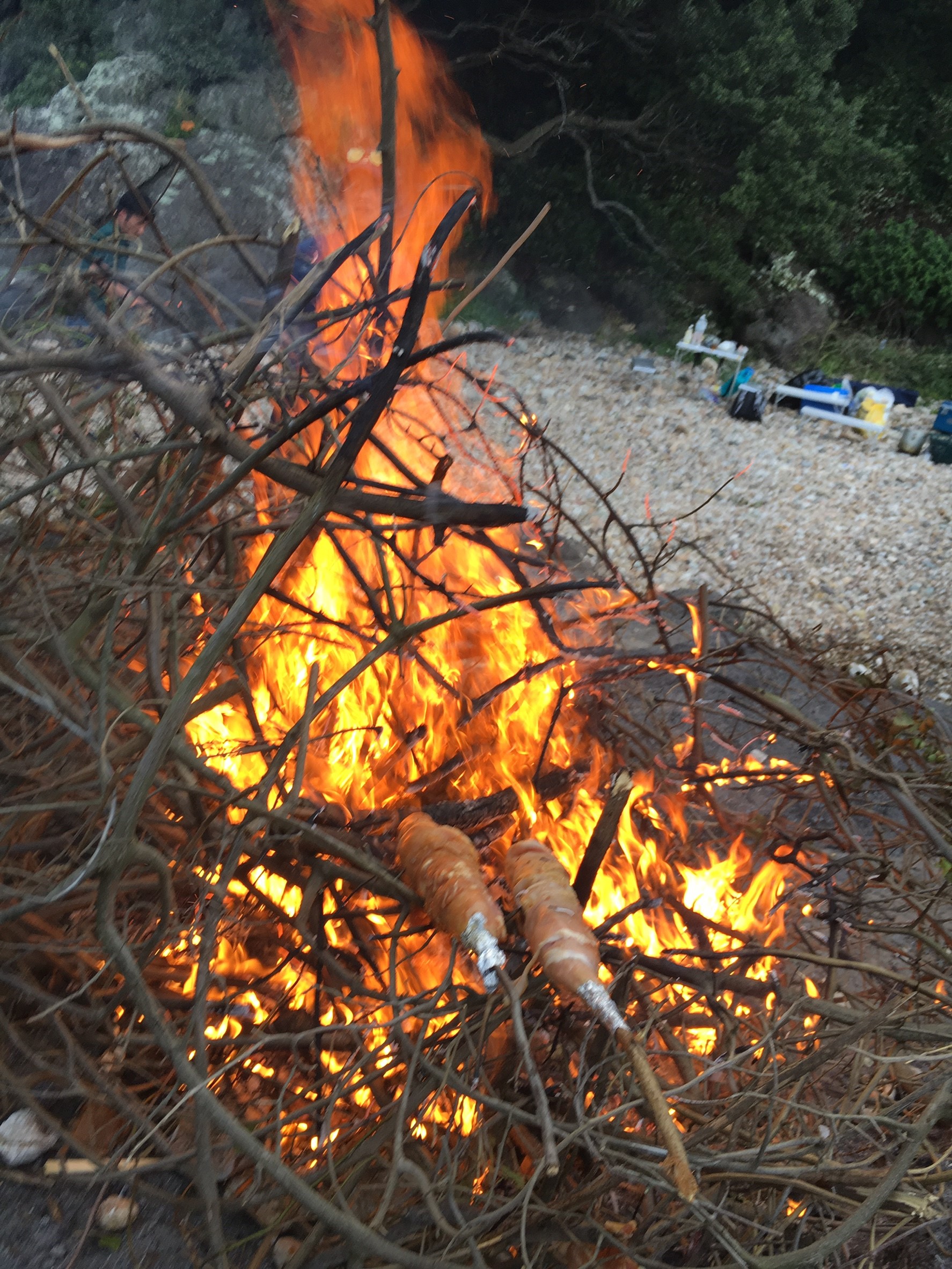 そしてキャンプファイヤーで肉巻きを焼いてやりました!!