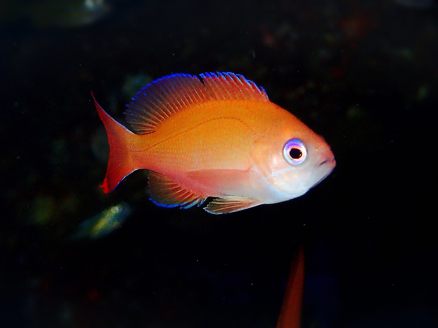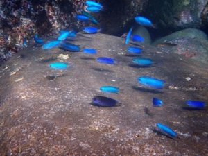 ミナミのドストライクな色をしてる、ソラスズメダイ。